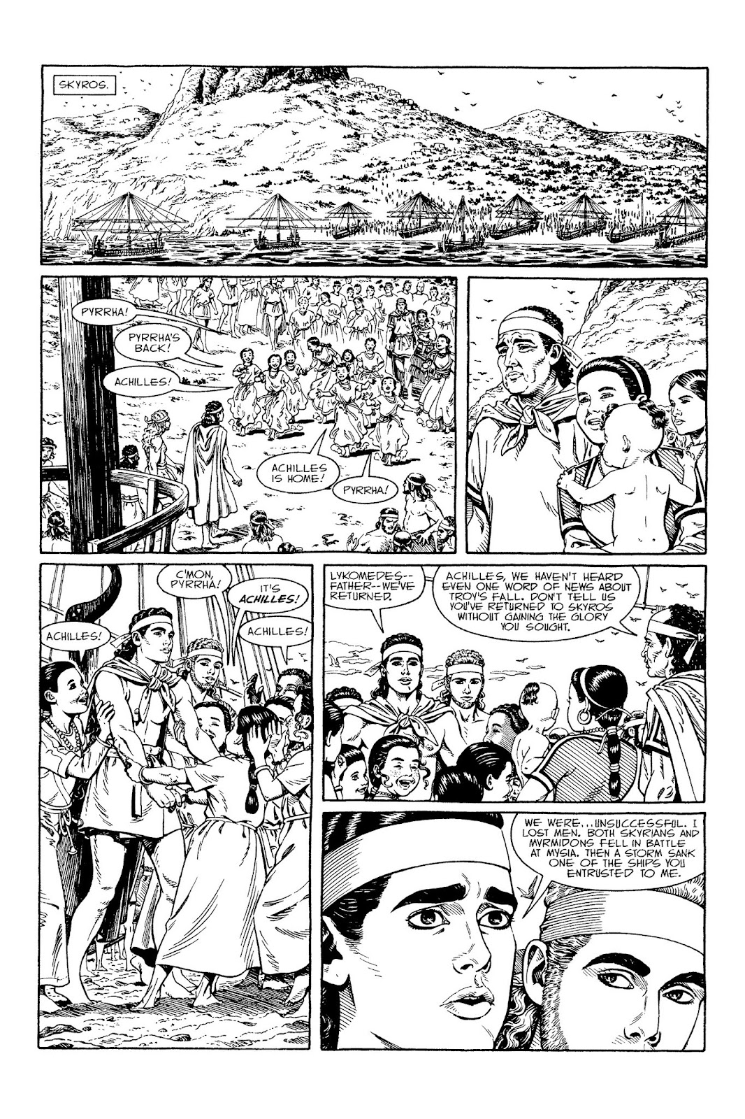 “Cantami, o diva, del Pelìde Achille l'ira funesta…” Shanower si imbarca all'inizio degli anni '90 in quello che è forse il progetto fumettistico più ambizioso di sempre: narrare la guerra di Troia in maniera realistica. Ambizioso in termini di ricerca e costruzione, non lunghezza. Si prende quindi ben 7 anni di ricerche, studiando testi, visitando i luoghi e consultando esperti. Il solo primo volume ha 10 pagine di bibliografia, ovvero 267 referenze e gli altri 3 volumi ne hanno 400.